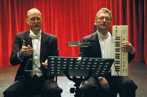 Der Pianist Sebastian Venus und der Schauspieler Dieter Hinrichs präsentieren einen Mozart-Abend, der es in sich hat: witzig, spritzig und mit viel Musik werden Mozarts Werke komödiantisch in Szene gesetzt.